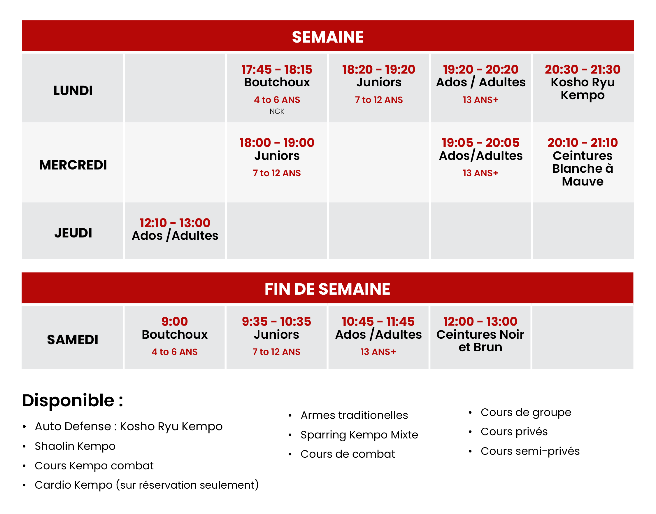 Quelle que soit la raison qui vous pousse à vous lancer dans la pratique des arts martiaux et du Shaolin Kempo, sachez que votre avenir et votre croissance sont entre vos mains. Apprenez à vous défendre, à protéger ceux que vous aimez et à devenir un guerrier. Ou pratiquez pour la santé et l’accomplissement personnel. Les choses les plus importantes sont la croissance, le développement, le service et le plaisir en cours de route !